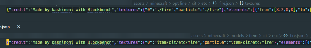 なので、texture=ではなくmodel=で参照できるように2Dテクスチャにもjsomモデルを作ってやればいい。