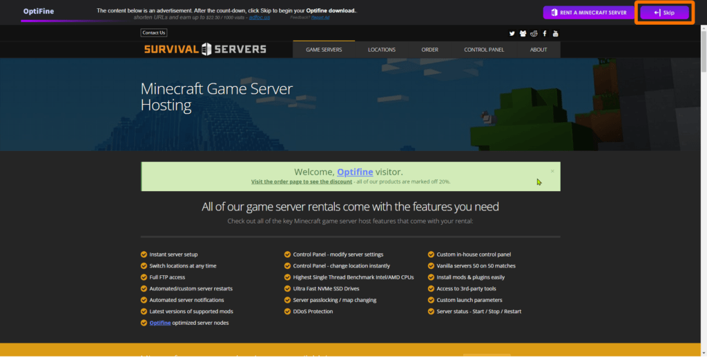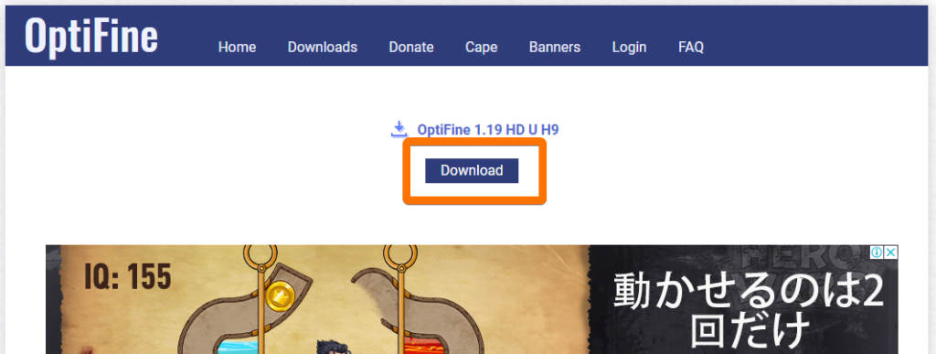 Optifineの公式ページからダウンロードする